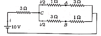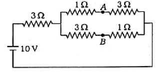 A battery of emf is connected to a group of resistances as shown in figure. The potential difference