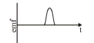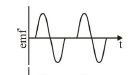 A magnet is made to oscillate with a particle frequency, passing through a coil as shown in figure. The time variation of the magnitude of emf generated across the coil during one cycle: