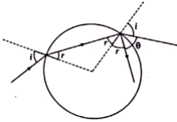 and is reflected and refracted further at the surface of the sphere. The angle between the reflected and refracted rays at this surface is: