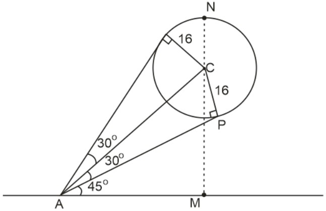A spherical gas balloon of radius 16 meter subtends an angle at the eye of the observer A while the angle of elevation of its center from the eye of . Then the height (in meter) of the top most point of the balloon from the level of the observer's eye is :
