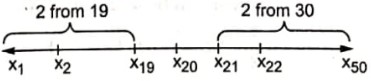 are fifty real numbers such that . Five numbers out of these are picked up at random. The probability that the five numbers have as the middle number is