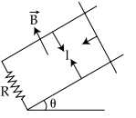A copper rod of mass m slides under gravity on two smooth parallel rails, with separation l and set at an angle of θ with the horizontal. At the bottom, rails are joined by a resistance R. There is a uniform magnetic field B normal to the plane of the rails, as shown in the figure. The terminal speed of the copper rod is :