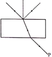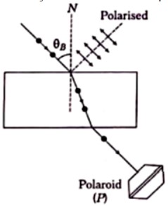 Consider the diagram the light beam incident from air to the glass slab at Brewster's angle . The incident ray is unpolarised and is represented by