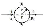 Current i is flowing through a wire, which forms a circle of radius r as shown in the figure. Resistance of segment AXB is twice the resistance of segment AYB. Then ,