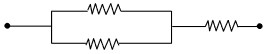 Each of three resistors connected in a circuit as shown has a resistance of and can dissipate a maximum of 18 W without becoming excessively heated. The maximum power that the circuit can dissipate is