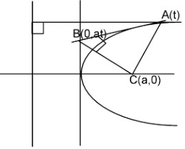 Find the coordinates of point on the parabola such that the area of triangle , (where C is focus and B is point of intersection of tangents at A and vertex) is maximum.