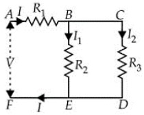 For ensuring dissipation of same energy in all three resistors connected as shown in figure, their values must be related as: