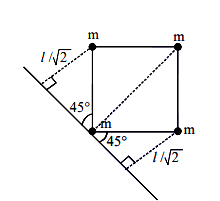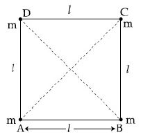 Four equal masses, m each are placed at the corners of a square of length (l) as shown in the figure. The moment of inertia of the system about an axis passing through A and parallel to DB would be :