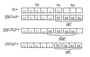 Among species, the hybridization states at the Ni atom are, respectively