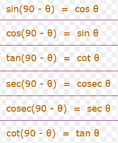 The trigonometric ratios for complementary angles i.e.