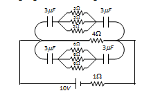 In steady state current flows through 4W resistance only and it is . Potential difference across 4W resistance is