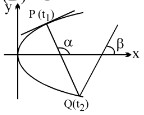 If the normal to a parabola at meets the curve again in and if PQ and the normal at makes angles and respectively with the x-axis then has the value equal to