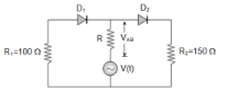 In the circuit given below, V(t) is the sinusoidal voltage source, voltage drop VAB(t) across the resistance R is