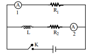 In the circuit given figure 1 and 2 are ammeters. Just after key K is pressed to complete the circuit, the reading will be