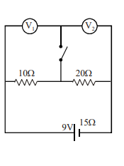reading of 1st voltmeter when switch is open and closed respectively. Similarly,