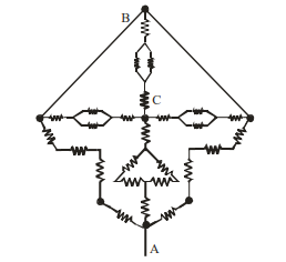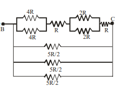In the given circuit if the equivalent resistance of the structure between B and C is , then find the value of R in ohm. R is resistance of each resistor.