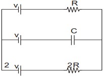 In the given circuit with steady current, the potential drop across the capacitor must be :