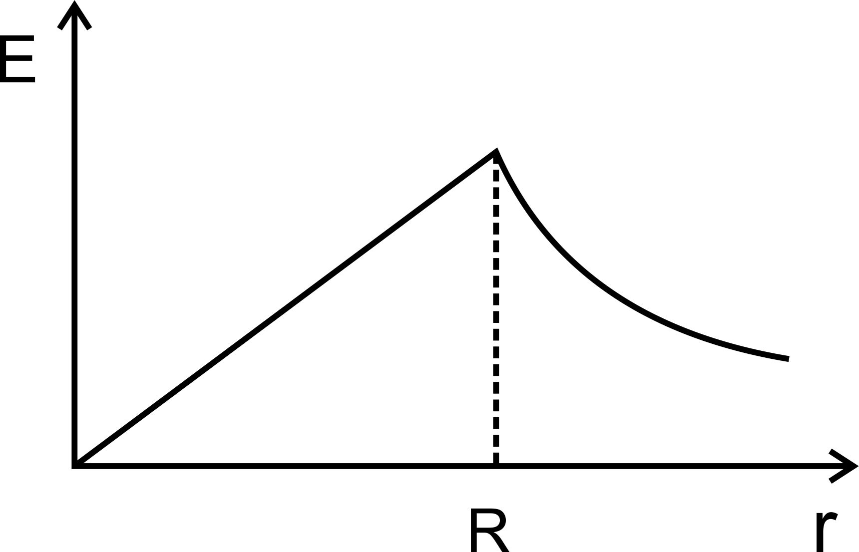 Figure shows a circular area of radius R where a uniform magnetic field is going into the plane of paper and increasing in magnitude at a constant rate. In that case, which of the following graphs, drawn schematically, correctly shows the variation of the induced electric field E(r) ?
