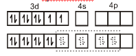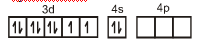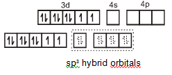In the paramagnetic and tetrahedral complex [NiCl4]2–, the nickel is in +2 oxidation state and the ion has the electronic configuration 3d8. The hybridisation scheme is as shown in figure.