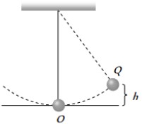 The bob of a simple pendulum is displaced from its equilibrium position O to a position Q which is at height h above O and the bob is then released. Assuming the mass of the bob to be m and time period of oscillations to be 2.0 sec, the tension in the string when the bob passes through O will be?