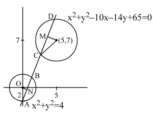 The equation of a line inclined at an angle to the axis , such that the two circles intercept equal lengths on it, is