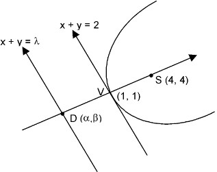 The equation of a parabola with the line as tangent at the vertex and focus at the point