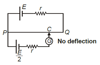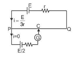 The potentiometer wire PQ is 100 cm long and its resistance is 2r. Where r is internal resistance of the battery. PC is equal to