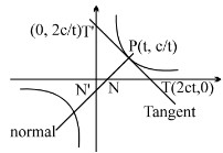 The tangent to the hyperbola at the point P intersects the x-axis at T and the y-axis at