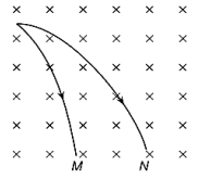 Two charged particles M and N enter a region of uniform magnetic field with velocities perpendicular to the field. The paths of particles are shown in Fig. The possible reason is