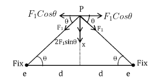 Two electrons each are fixed at a distance '2d'. A third charge proton placed at the midpoint is displaced slightly by a distance x (x << d) perpendicular to the line joining the two fixed charges. Proton will execute simple harmonic motion having angular frequency : (m = mass of charged particle)