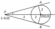 Two tangents to the circle at the points A and B meet at . The area of quadrilateral where O is the origin, is