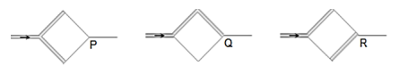 Two thick wires and two thin wires, all of the same materials and same length form a square in the three different ways P,Q and R as shown in fig with current connection shown, the magnetic field at the centre of the square is zero in cases