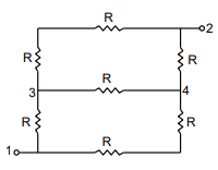 What will be the equivalent resistance of the network shown in the figure between the terminals 1 and 2.