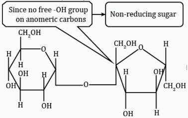 It has neither aldehyde of glucose nor ketone of fructose available because of glycosidic linkage. So, it is non-reducing in nature.