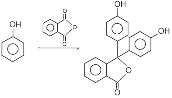Phenol reacts with Phthalein anhydride to form Phenolphthalein.