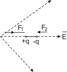 A dipole is placed in an electric field as shown. In which direction will it move?