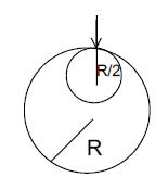 A spherical hole of radius is excavated from the asteroid of mass as shown in the figure. The gravitational acceleration at a point on the surface of the asteroid just above the excavation is