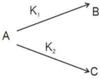 Consider a parallel reaction . If the rate constant for first pathway , is .what is the ratio of the rates of formation of when ?