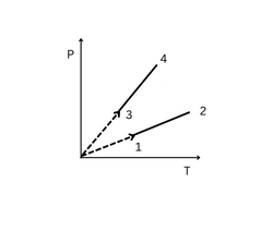 Pressure verses temperauture graph of an ideal gas of equal number of moles of different volumes are plotted as shown in figure. Choose the correct alternative.