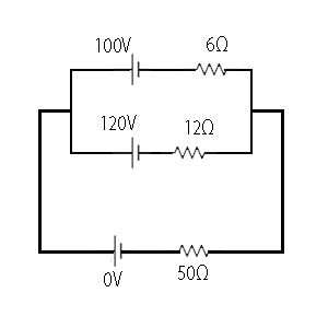 Two batteries with e:m.f 100 V and 120 V are connected in parallel across a load resistor of 50Ω. The internal resistances of the two batteries are 6Ω and 12Ω respectively. The voltage across the load lies between-