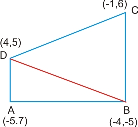 If A(–5, 7), B(–4, –5), C(–1, –6) and D(4, 5) are the vertices of a quadrilateral, find the area of the quadrilateral ABCD.